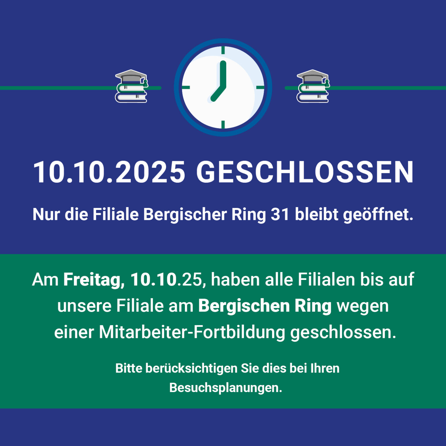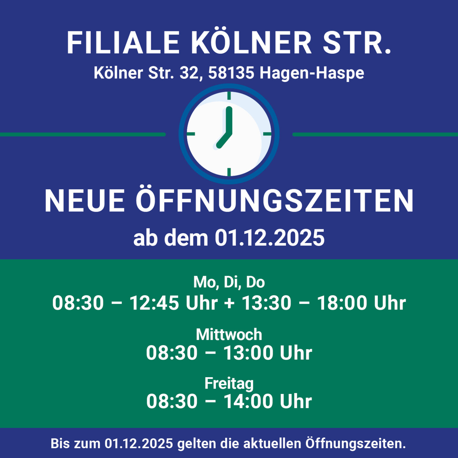 Folgende Filialen sind vom 23.12.-31.12. durchgängig geschlossen: